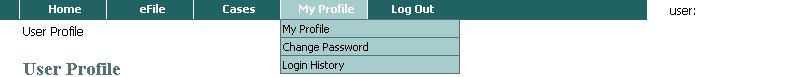The name of the current user appears at the far right of the menu bar. This name is provided from your user profile. You can access and edit your profile information by selecting My Profile > My User Profile.
