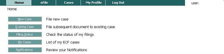 You can use the Home Page buttons to file new cases and perform other important functions.