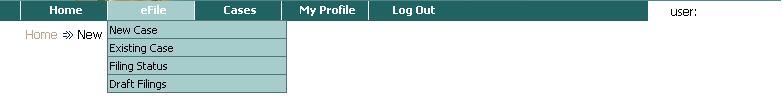You can use the menu options to move through eFiles and perform various functions. Whever you leave a dialog, the information you have entered as part of your submission is saved as a Draft.